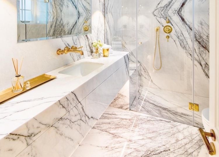 Acabamentos de alto padrão em mármore e granito.