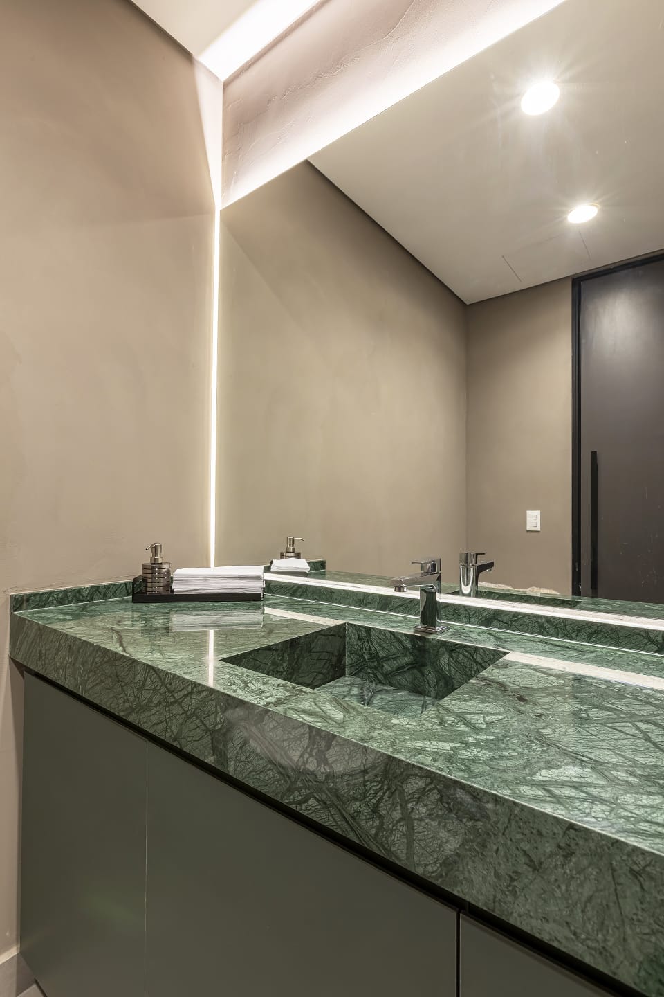 Acabamentos de alto padrão em mármore e granito.